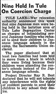 Page 1: Co-op congress elects new board members; raising live fowl, rabbits prohibited; 66 residents pass pre-induction physical; congress approves center gift shop; acute employment problem hits camp; Bishop Rotary Club members visit; report reveals status of Nisei; teacher shortage; employment agency to be established; display in New York; issue instructions on railway-express; Methodists seek unity in church; Chinese lecturer decries La Guardia; Heath gets details on business license; former Californians eligible to vote; anti-Negro prejudice 'infects' Britain; play day held.