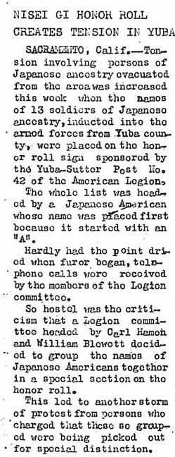 Page 1: Adult education to start new classes; national Red Cross accepts messages to Philippine prison; warn residents on overheating stoves; nine selectees inducted into enlisted reserves; WRA reports wider evacuee distribution; reveal total Nisei casualties; warehouse job open in Chicago; do your part; former commander of American Legion pays tribute to Nisei; extend date for basketball signup; President Roosevelt closes door to west coast area; children 15 years under will see.