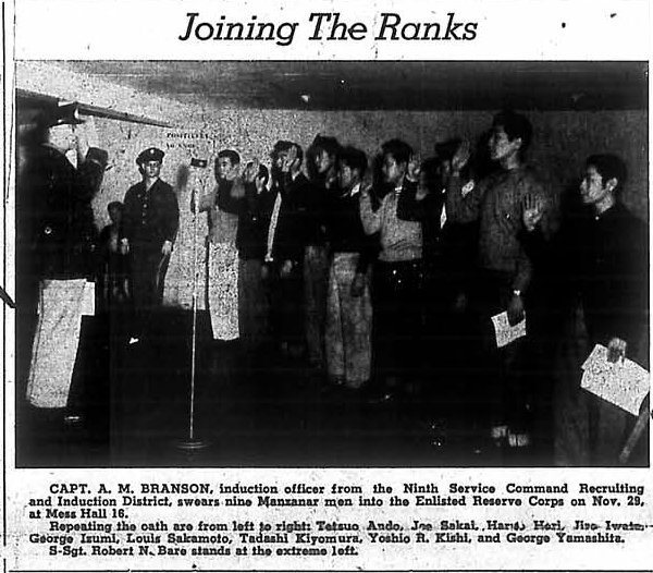 Page 2: A year ago this week; chief Hon warns residents; private Miyoko visits; location scenes taken in Alabama hills.