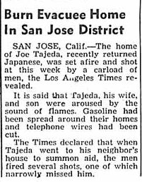 Page 1: Twelve called to active duty; tell temporary closing of laundry; apply for permits at fire department; Hashii to help farmers settle in Nebraska; tell number of Nisei casualties in Armed Forces; volleyball teams register for play; outcome of infantile paralysis campaign revealed; Pfc. Arikawa receives good conduct medal; more Red Cross messages here for residents; Merritt reveals Myer's schedule for next week; aliens, citizens may be issued business licenses; Don Brown post to admit Nisei; Azusa Nisei GI 'happy in Army'; anti-Nisei sentiment hit by war veteran.