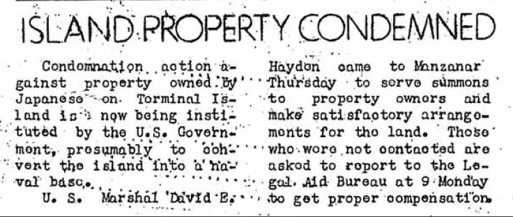 Page 1: Housing improvements to go full speed ahead; evacuees to be moved directly to relocation centers; reunion of immediate family only, official regulation; lost & found at town hall; legal records dept. in new location; watermelon for net workers on hot days.