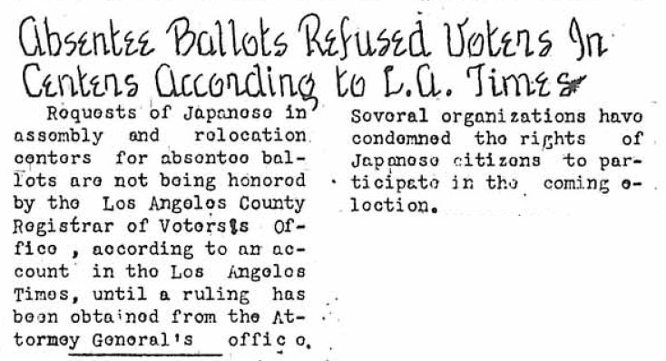 Page 1: Movie to be presented here; urge eligible workers to call for pay; winning crews receive melons; paper will suspend publication for one week; record office moves; soap to be issued; jail a la Manzanar; athletic equipment arrives; questionnaires.