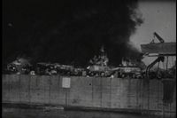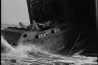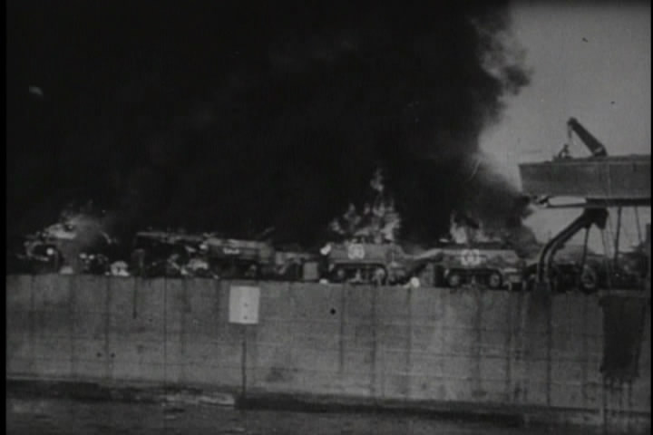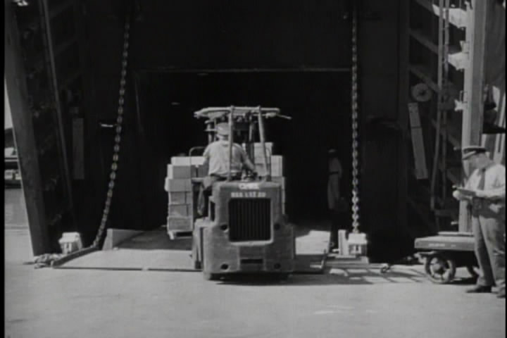 Here's a fork-lift carrying supplies into an LST. Notice that you can't even see the top of the entrance, the ship is that big.