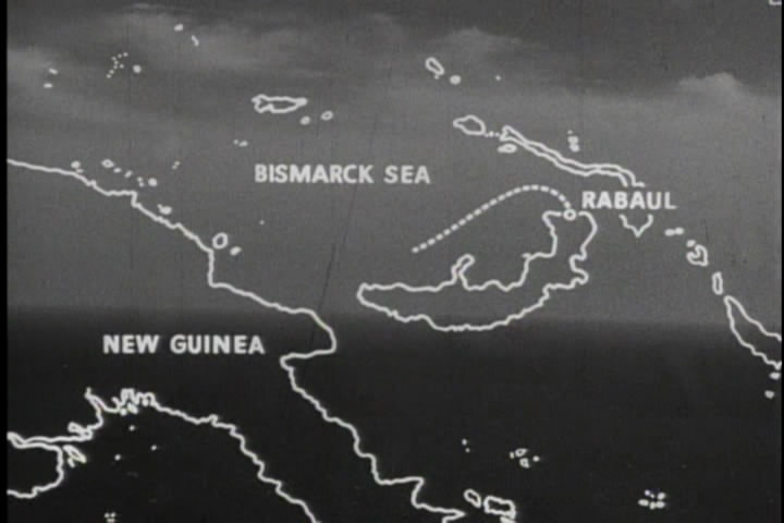 This is the three-day Battle of the Bismarck sea. All 8 Japanese transports are sunk, and over 3000 Japanese troops die.