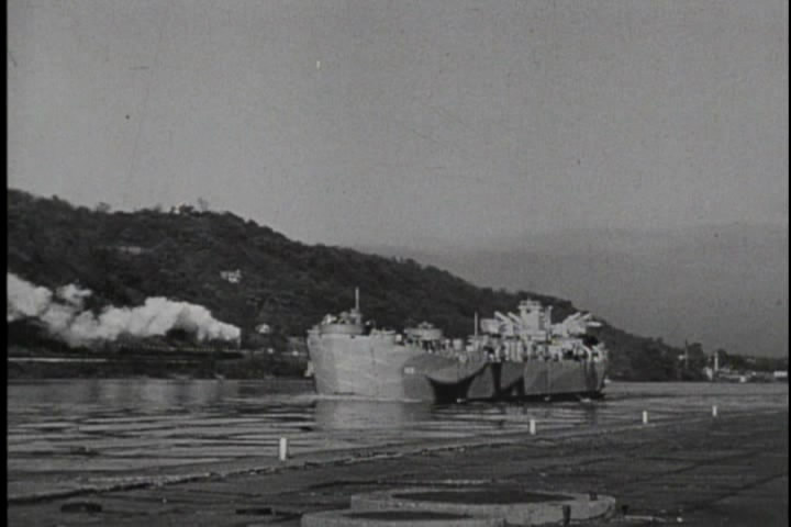 An LST, landing-ship-tank, which was a new kind of ship for the war.