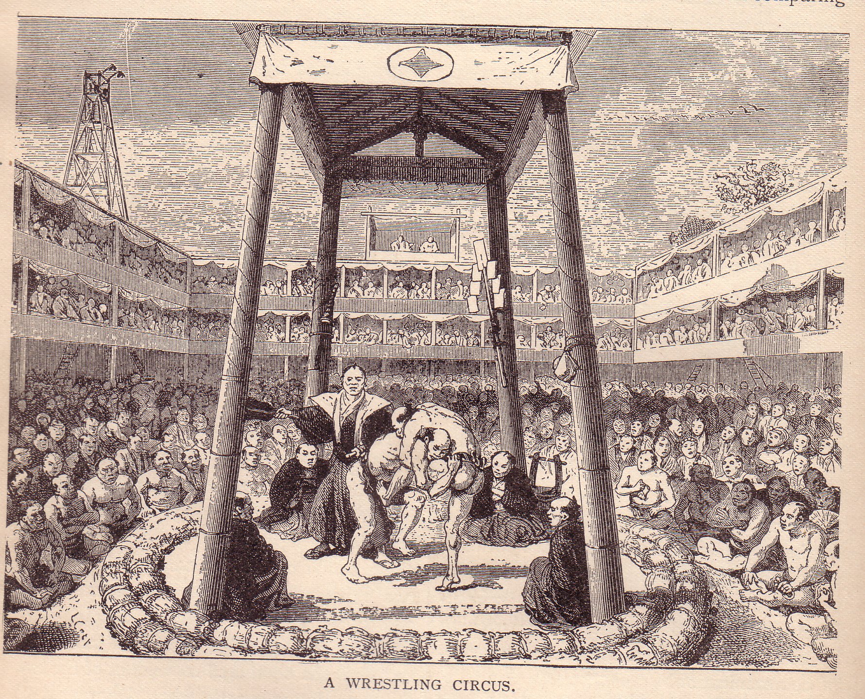 He writes about attending a sumo match (although he doesn't use that term; he uses wrestling as a term), and refers to it as repulsive.