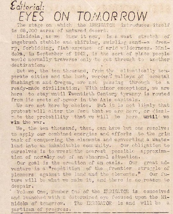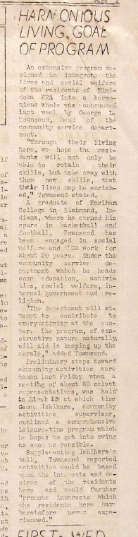 Page 1: Plans for a form of self-government for the camp are under way. Workers will be allowed to commute to farm work. There will be meetings discussing the self-government plan. Ten students are relocating to various colleges.