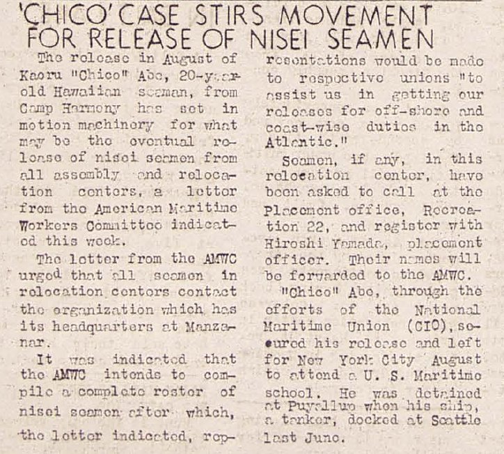This is the first bit of information like this that I have found, that some Nisei sailors could end up being released to go back to sea.