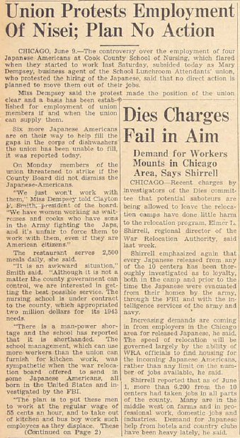 Page 2: Eacu-ways column; hospital in need of nurses' aides; jt. hearing board aids Nisei seamen; Cleveland hostel on cooperative basis; co-op theaters; aliens employment from page 1; Dr. Neher returns to resume duties; vital statistics.