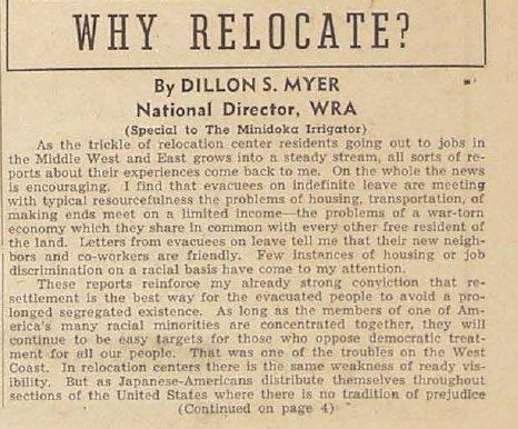 Page 2: Relocation asks Pacific Coast leadership aid; indefinite leaves; visitors; more farm workers needed.