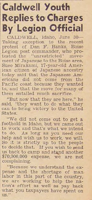 Page 3: Evacuee workers on leave subject to WMC orders; pamphlets, books to aid resettlers; Nisei pastor to serve at boys' camp in Maine; special committee begins study on project's labor situation; Christian confab planned; residents soon to have some home grown vegetables; two families off for Crystal City; Shook joins staff of social services; Seattle diplomas article from page 1; hundreds send off fifth contingent of 26 volunteers; aliens forbidden to operate cameras anywhere in U.S.