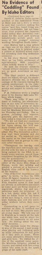 Page 8: Our Boys in the Service column; outside job offers; church services; two nurses to be transferred from Topaz.