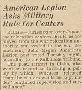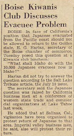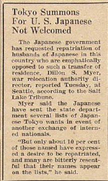 Page 1: WRA says Hunt cannot be used to house prisoners; WRA picks Tule Lake as segregation center; Army calls seven more volunteers; Senate committee recommends Nisei subject to draft; former N.W. evacuees may join friends; representatives chosen to mull segregation deal; join meeting to be held by guidance committee; Governor requests use of Hunt for war prisoners; Illinois town welcomes first Japanese family; new gate regulations; project officials meet in Denver to plan segregation.