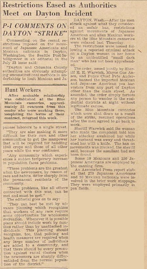 Page 3: Hazelton labor camp raises wages; Nisei soldiers apprehended exhuming camera; Iowa, Minnesota offer war training programs; procedures listed to enter hostels; relocation program continues from page 1; New England group forms hospitality committee.