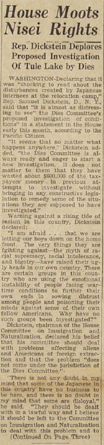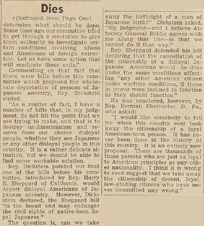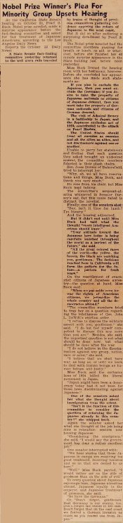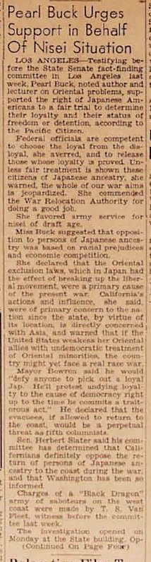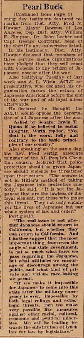 Pearl Buck testifies in favor of Japanese Americans.