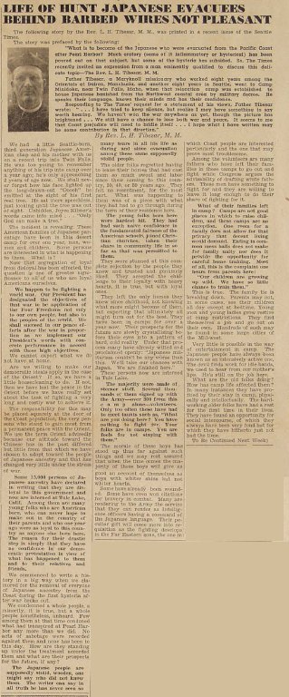 Page 2: Editorials; life in New England states as seen by New England Nisei; California pastors devote sermons to minorities; Fukei writes of Chicago Nisei relocated from ten centers; Catholic magazine asks weighing of facts before making decision on Nisei; The Reader's Rostrum column; Ex-U.W. writes letter on evacuee feeling; last year about this time.