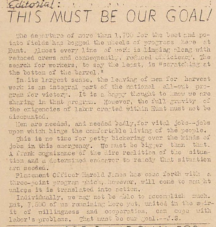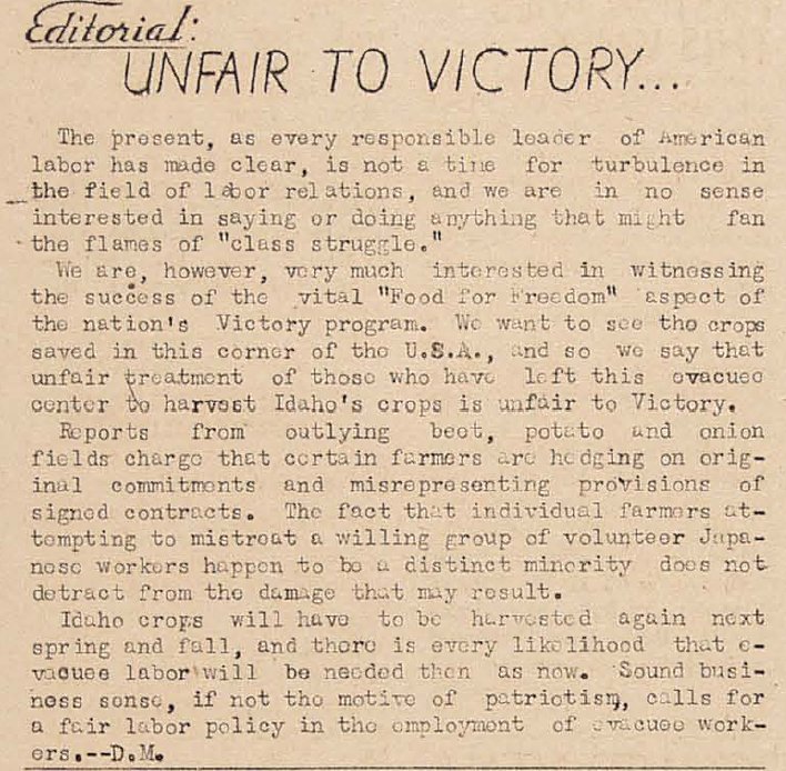An important editorial showing that things are not as sunny as usually reported in present-day works as far as the off-camp agricultural work program went.
