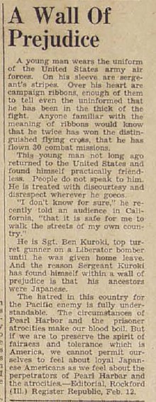 Page 2: Editorials; allowances for dependents of soldiers (cont.); visitors; Sandburg avers Nisei loyal to U.S.; Vernon Kennedy speaks of Japanese in Chicago; brave :Yanks with yellow skin.