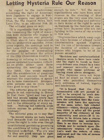 Page 2: Editorials; visitors; relocation opportunities; Pipe Dreamin'; fair play for Nisei asked in petition by ninety prominent Salt Lakers; Major Kelly, Chicago, outlines deep significance in race relations; relocated; Sun writes of Omiya's sacrifice; missionary who returned on Gripsholm to talk.