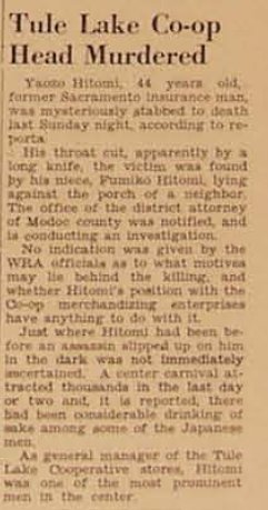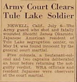 I had been looking for this article to appear. The soldier who shot the old Japanese man at Tule Lake, and who was then put up for court-marshal, was found innocent.