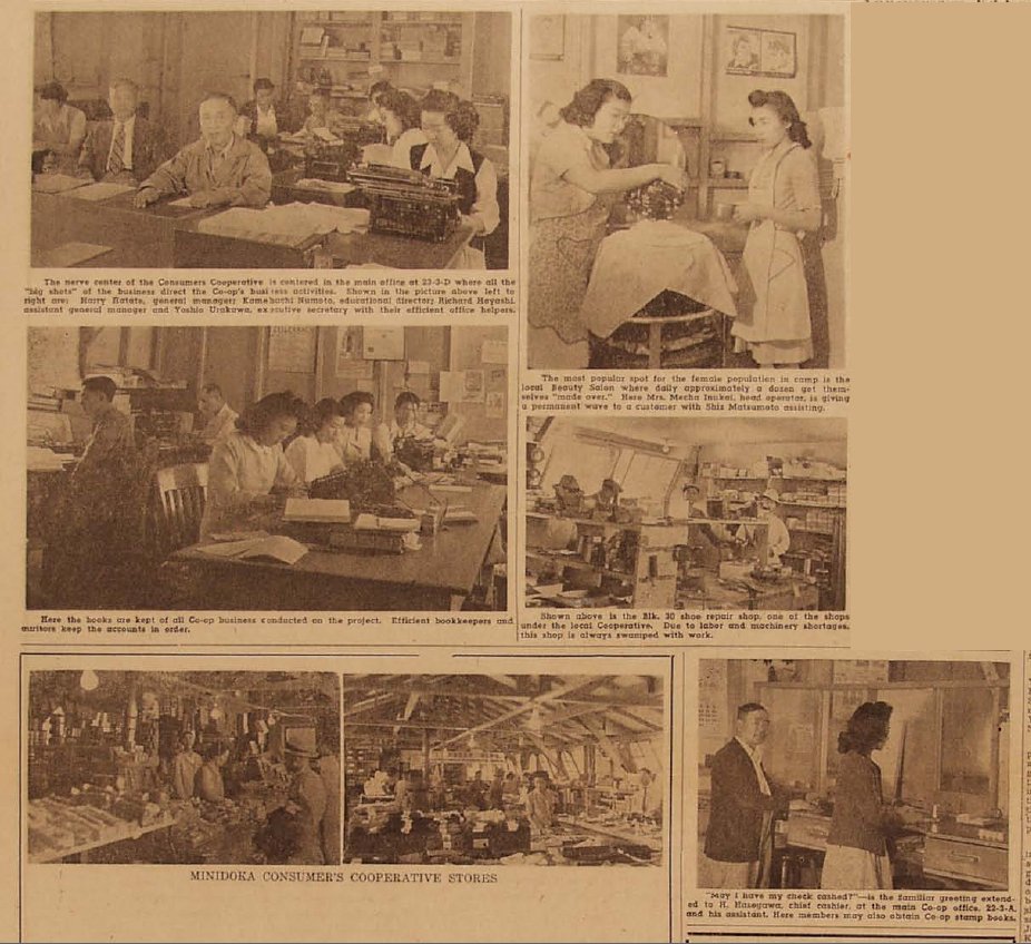 Page 2: community govt. set up December 43; councilmen elected for second term; council takes part in many activities; fair labor board settles working condition dispute; blocks elect 35 men as commissioners to council.