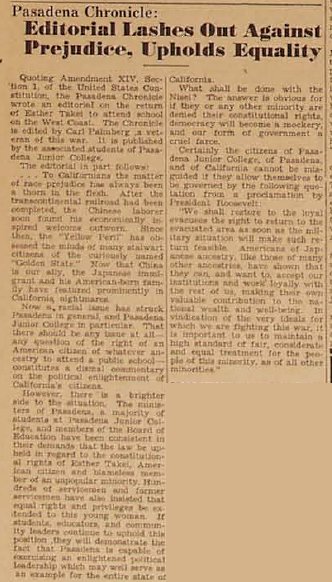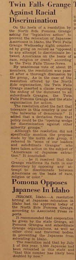 Page 3: Evacu-ways; Pasadenan comments on entry of Nisei to P.J.C.; lecture on Idaho; lecture on health; relocated; Chicagoan writes on race feelings on the home front; engagements; 'Ban Japanese Committee' head does about-face; movie schedule; Huntsville PTA; new junior counselor; nursery schools now in operation; last year about this time; popular school teacher leaves; infantrymen write letter to daughter praising dad; singing class begins.