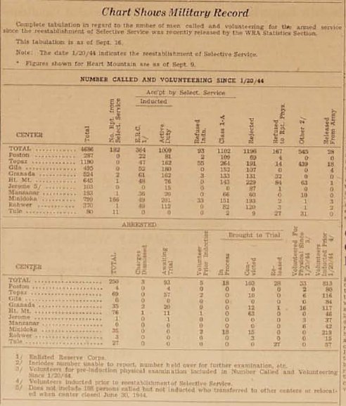 Page 1: NBC to broadcast story on Nisei soldier today; project director gives message; 17 Hunt men answer draft call; judge Clark issues varied sentences to draft evaders; outstanding record of 442nd in battle told; community chest drive begins; farm suffers $15,000 loss from frost; 200 high school students help on local farms; hospital now has 43 1/2 nurses' aides; 15 families sign up for Sioux depot; So. Pacific veteran visits father here; induction for nine men slated; six men to take physicals; two men face evasion charges; National Fire Prevention Week; fair stand on Nisei taken by Pasedena school board; head of relocation named; block clerks picked, replace managers; medal awarded son of project head.