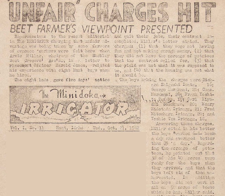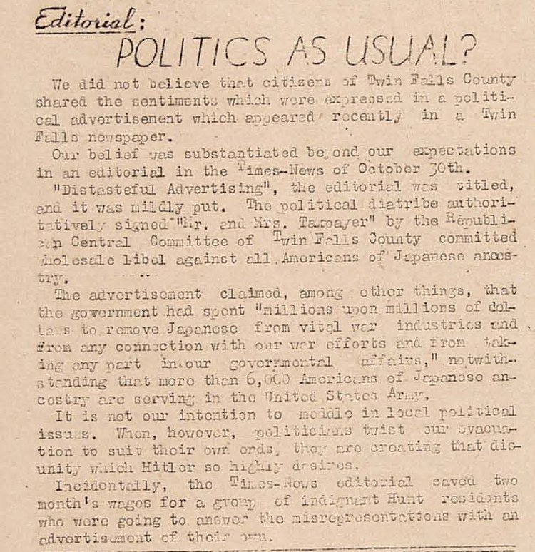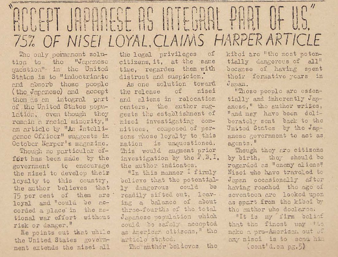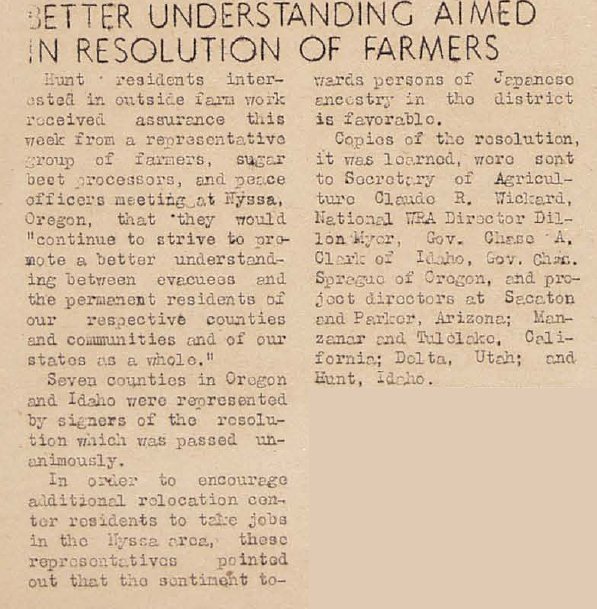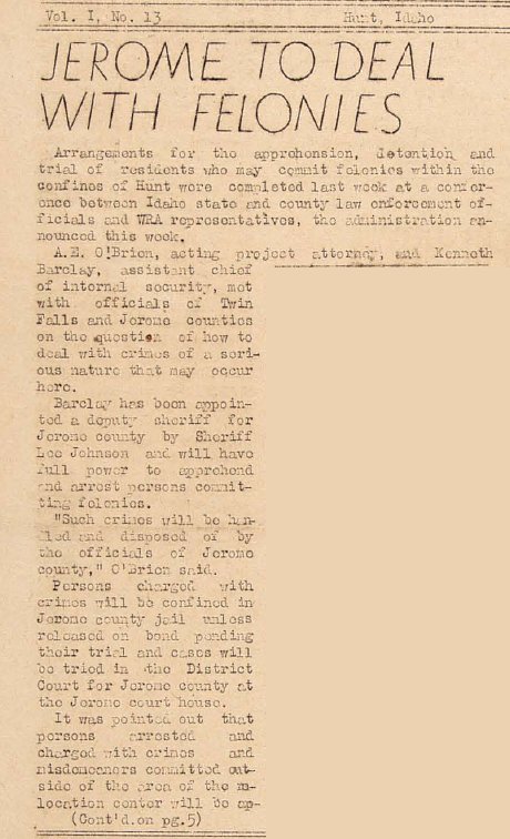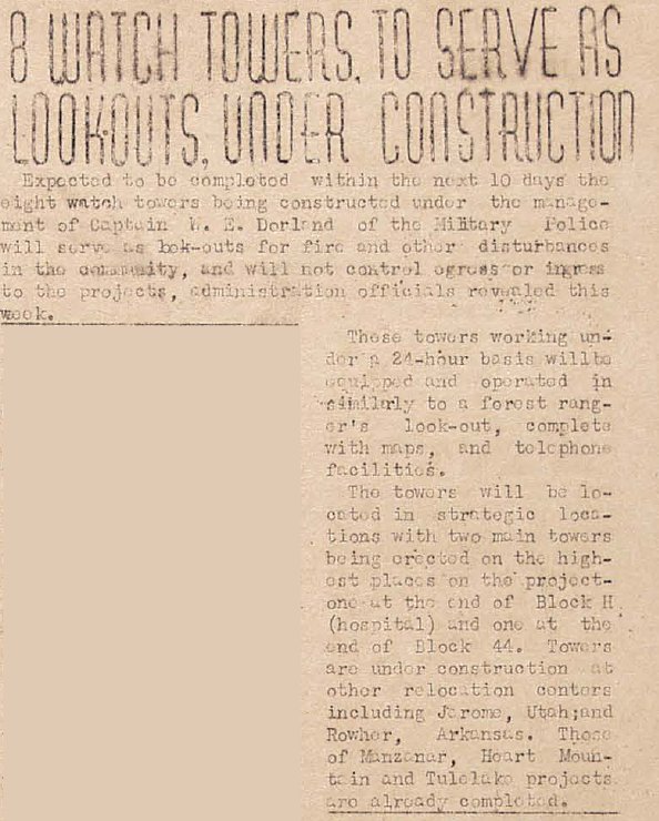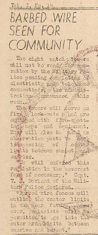 Page 1: The Army wants Nisei and Kibei for the Military Intelligence Unit. This is one the same page as the article below pointing out the camp will be surrounded by barbed wire. Talk about contradictory tones. The acting project director has left to take another post; four soldiers visited; four former internees at Camp Lordsburg are at this camp now; a funeral.
