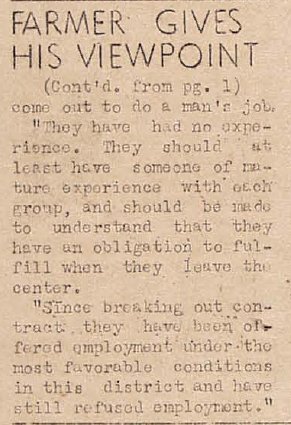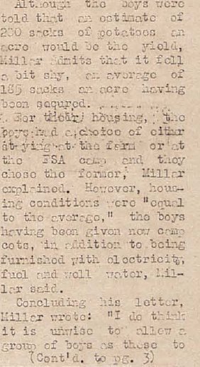 Page 1: Qualifications defined for work leaves; colonists might receive their September pay that week; 2285 workers are out on various farms; residents may send for privately-stored goods.