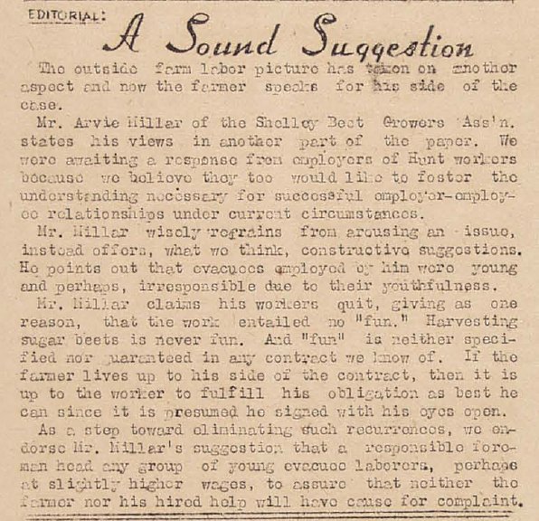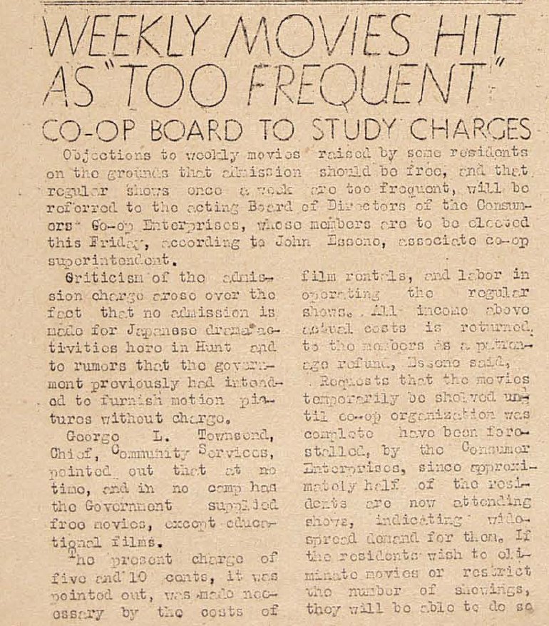 Page 1: More evacuees are expected, who are expected to help ease the labor shortage; colonists can work and still get old-age benefits; camp's boundaries are defined; a movie is scheduled; co-op workers have gotten their September pay, but the others must wait.