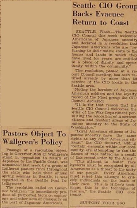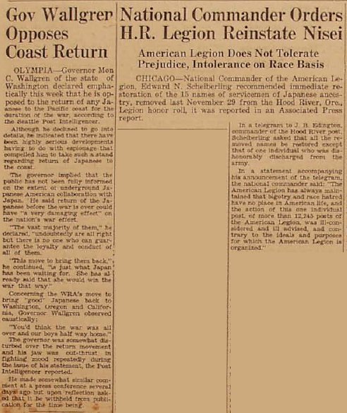 Page 1: Amendment to charter approved; 44 nominees elected co-op board; Myer against mixing evacuees, prisoners at Hunt; construction on project eliminated; 8 ERC men called for active duty; farm crop harvest completed; Myer plans to visit here; claims must be filed by workers; three dining halls to be closed; induction selected for 8 men; news of individual soldiers; 188 Nisei from centers receive combat badges; new postal ruling simplifies money order regulations; ballots for Seattle primary available; battlefield promotions given 103 Nisei soldiers; relocatees may get contrabands; steward division workers to be cut; 11 men take physical at Boise.