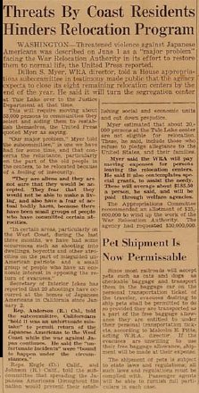 Page 1: WRA institutes new relocation assistance policy; Hunt H.S. graduation rites held; news of individual soldiers; government housing available to evacuees.