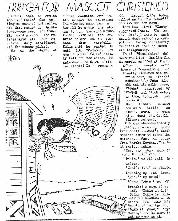 Page 3: Mail boxes will speed delivery; chairs and pianos here for camp use; clothing grants being issued at Heart Mt.; airport work is falling behind due to lack of labor; regular issue of coal arrives; two recreation halls have been converted into movie theaters; some items found.