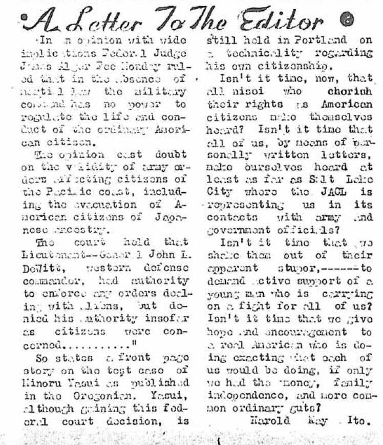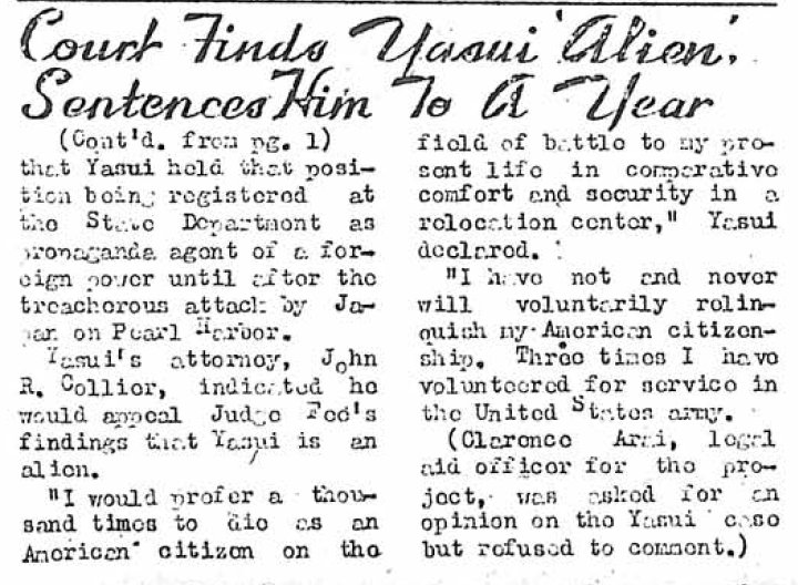 Making headlines, Yasui's challenge to the legal system.