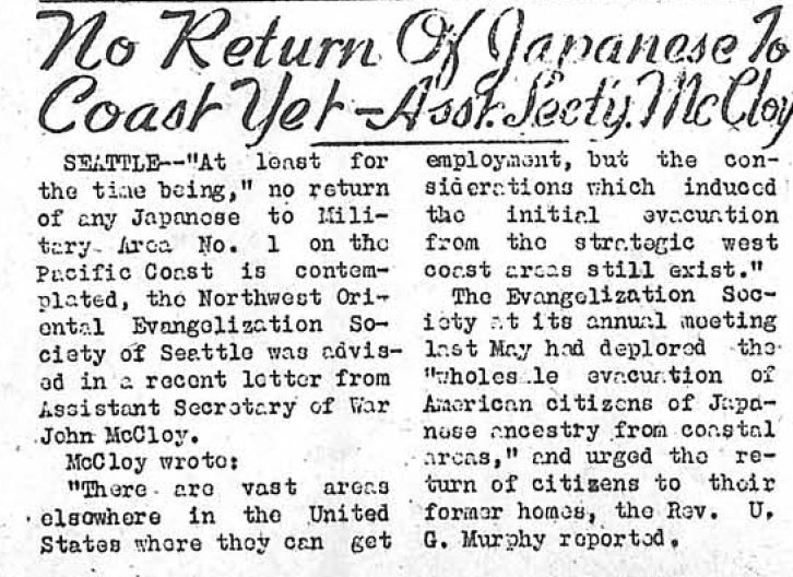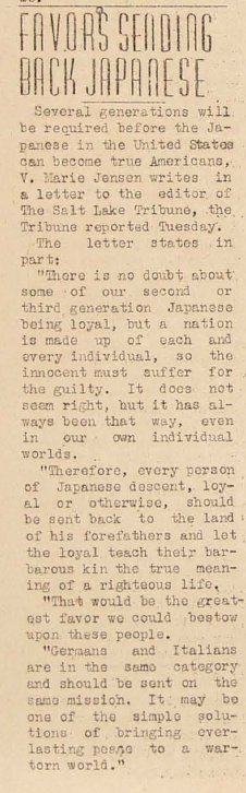 Page 1: Co-op meet to draw Essene to Salt Lake; outside employment aids organized for evacuees; D.H. 30 places first in cleanliness race.