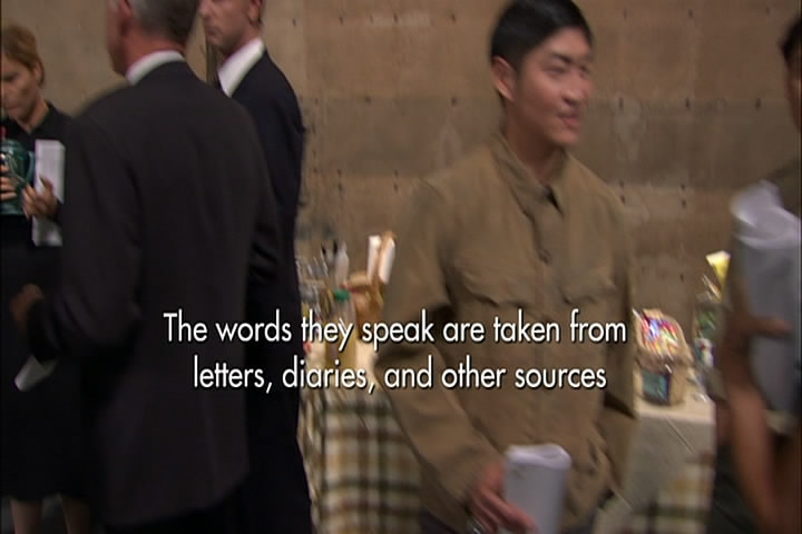 Then the film talks about the people the actors are representing and what happened to them after they left Nanking. One committed suicide; one returned to California suffering from exhaustion; John Rabe was arrested both by the Gestapo and the Soviets. These people who were there are estimated to have saved the lives of 250,000 Chinese.
