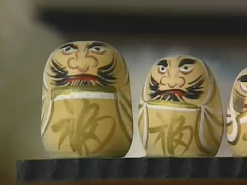 I think these are called dharma. They come with one eye unpainted. You make a wish, and if it is fulfilled, the other eye then gets painted in. If anyone played the game Animal Crossing, there are three different-sized dharma in it.