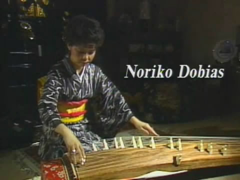 A woman plays an instrument which sort of reminds me of an auto-harp or dulcimer.