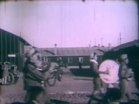 Film from one of the camps. The narrator uses the term 'concentration camp.'
