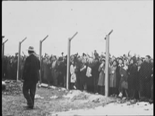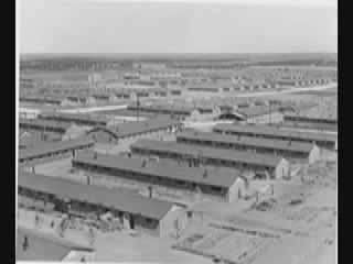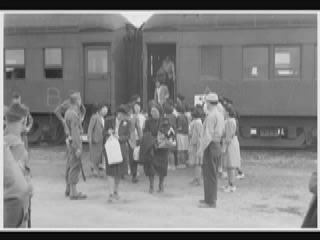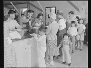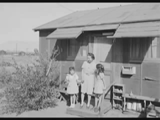 The woman describes how she got off a truck and was given a gunny sack and told to fill it with straw. It would be her mattress. She was sent to Manzanar. She talks about the dust that was there. She talks a lot about how badly they were treated, and that it was due, at least in part, to white superiority and racism.
