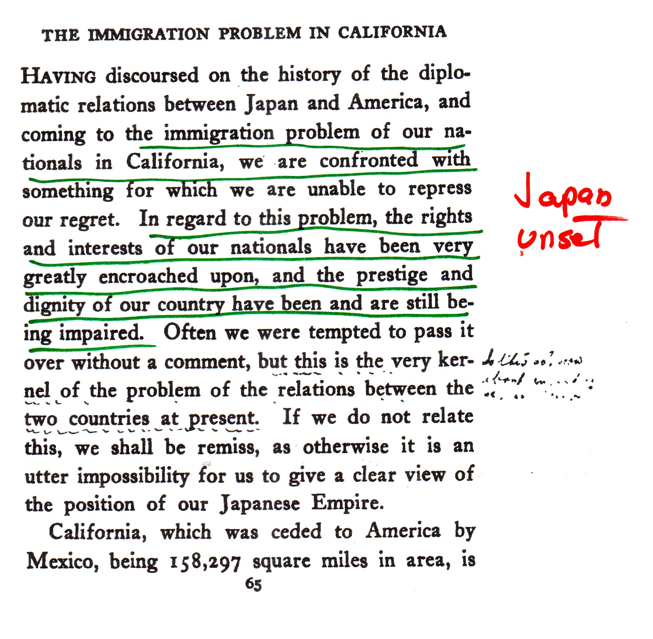 Japan is upset over what is happening in the U.S. as far as discrimination against Japanese immigrants goes.