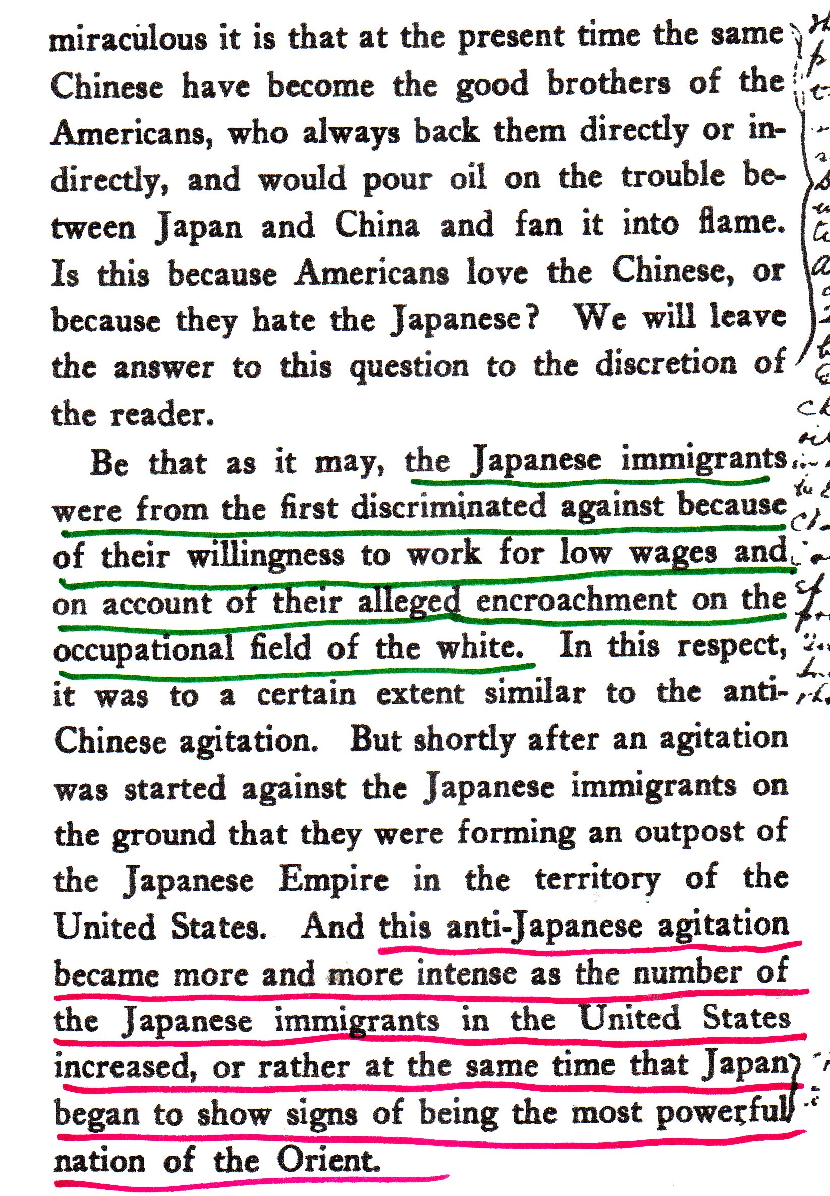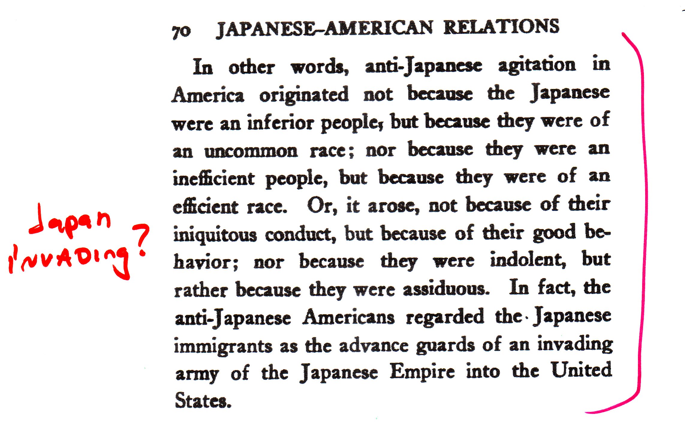 Some of the California people, according to this Japanese writer, saw the Japanese immigrants as sort of an invading army.