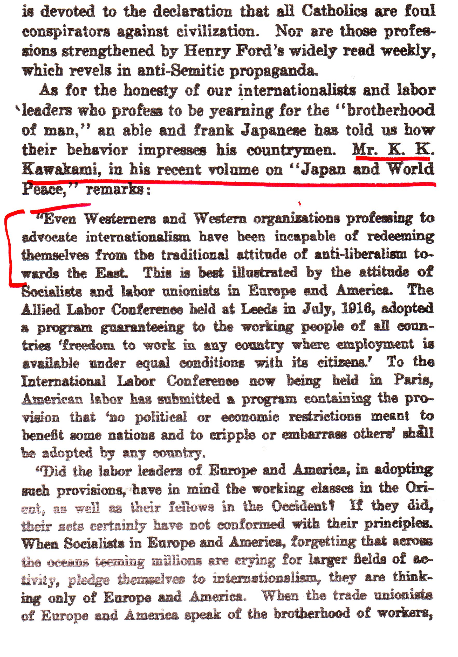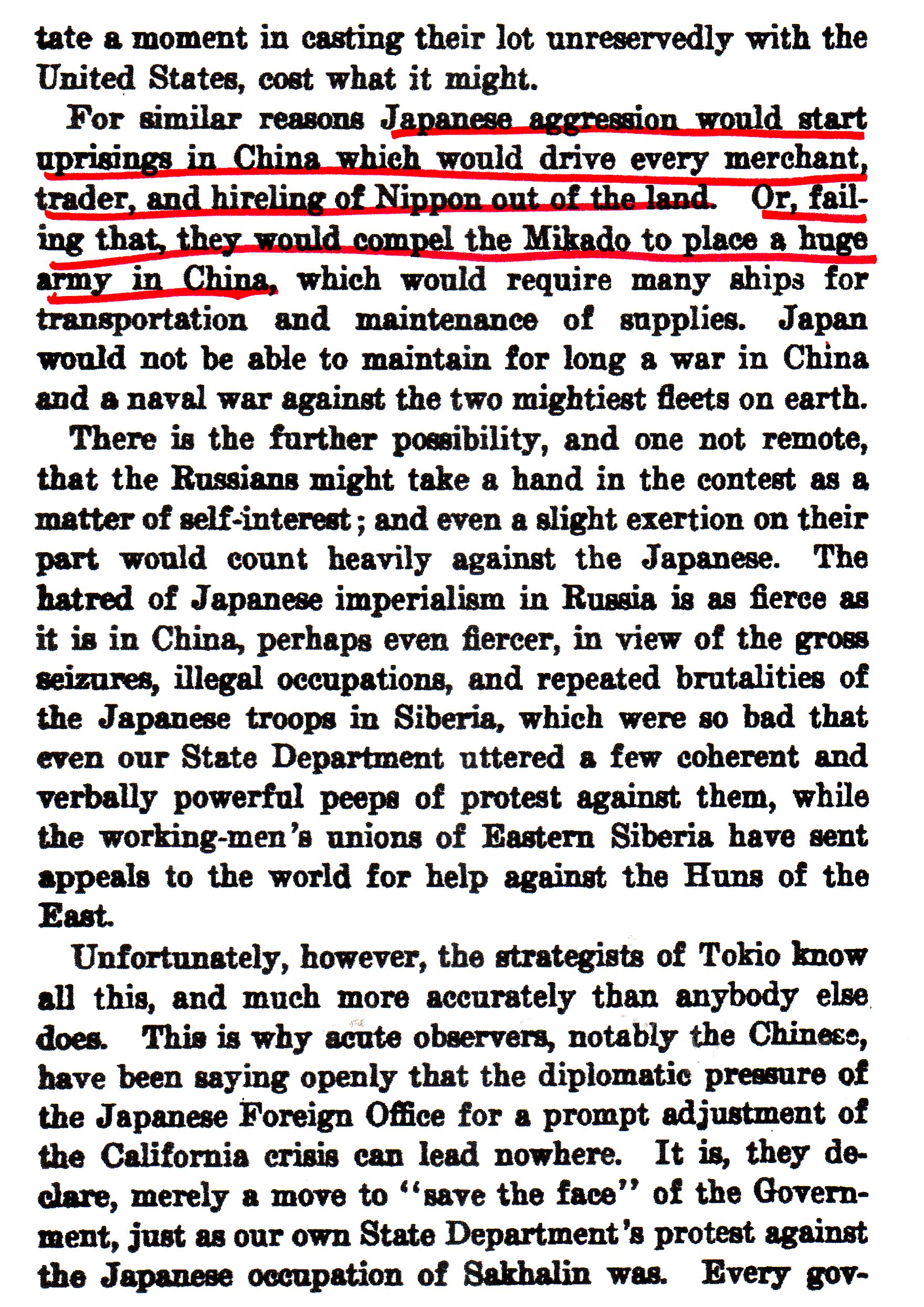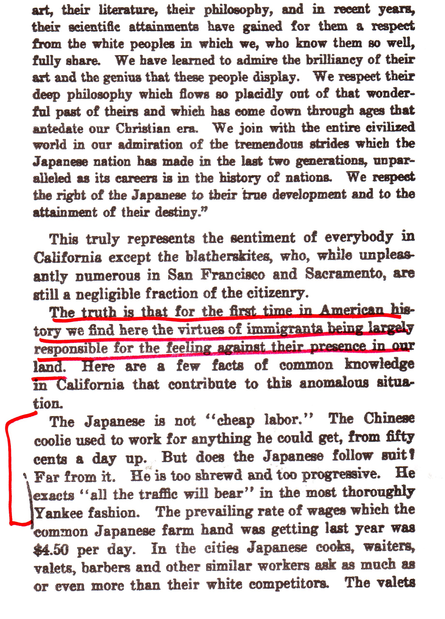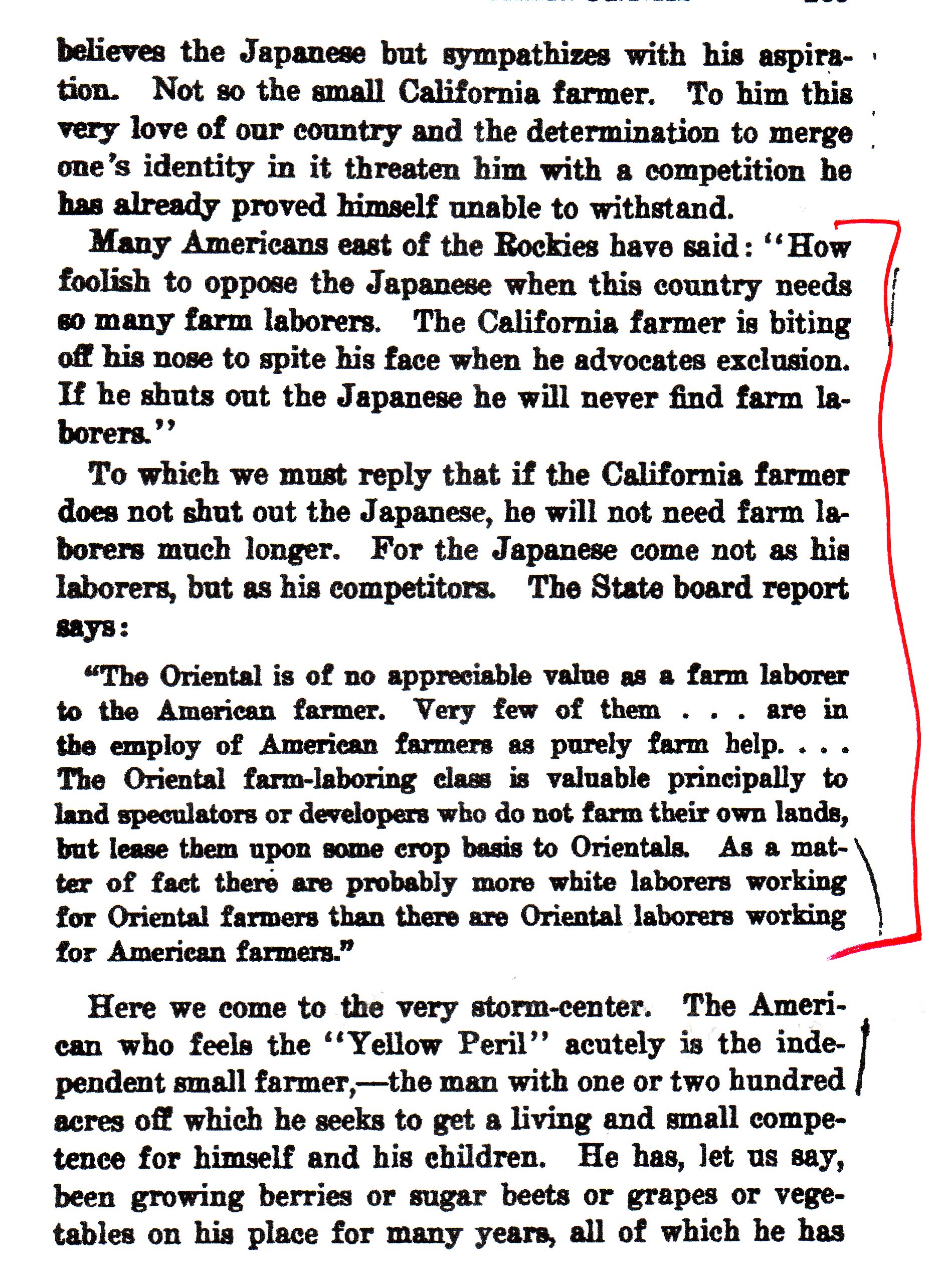 His writing continues. (The labor issue was one of the major issues that contributed to anti-Japanese prejudice on the West Coast.) The point of all these articles that the author cites is to show just how negative an image of the U.S. the Japanese were receiving from our own mass media.