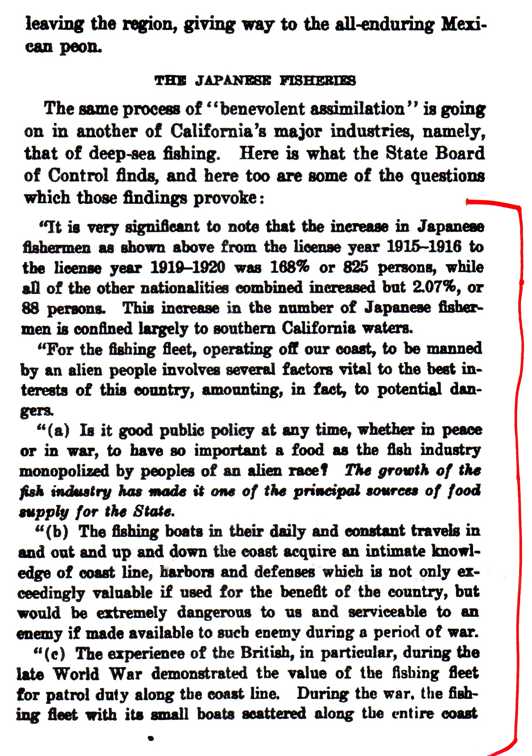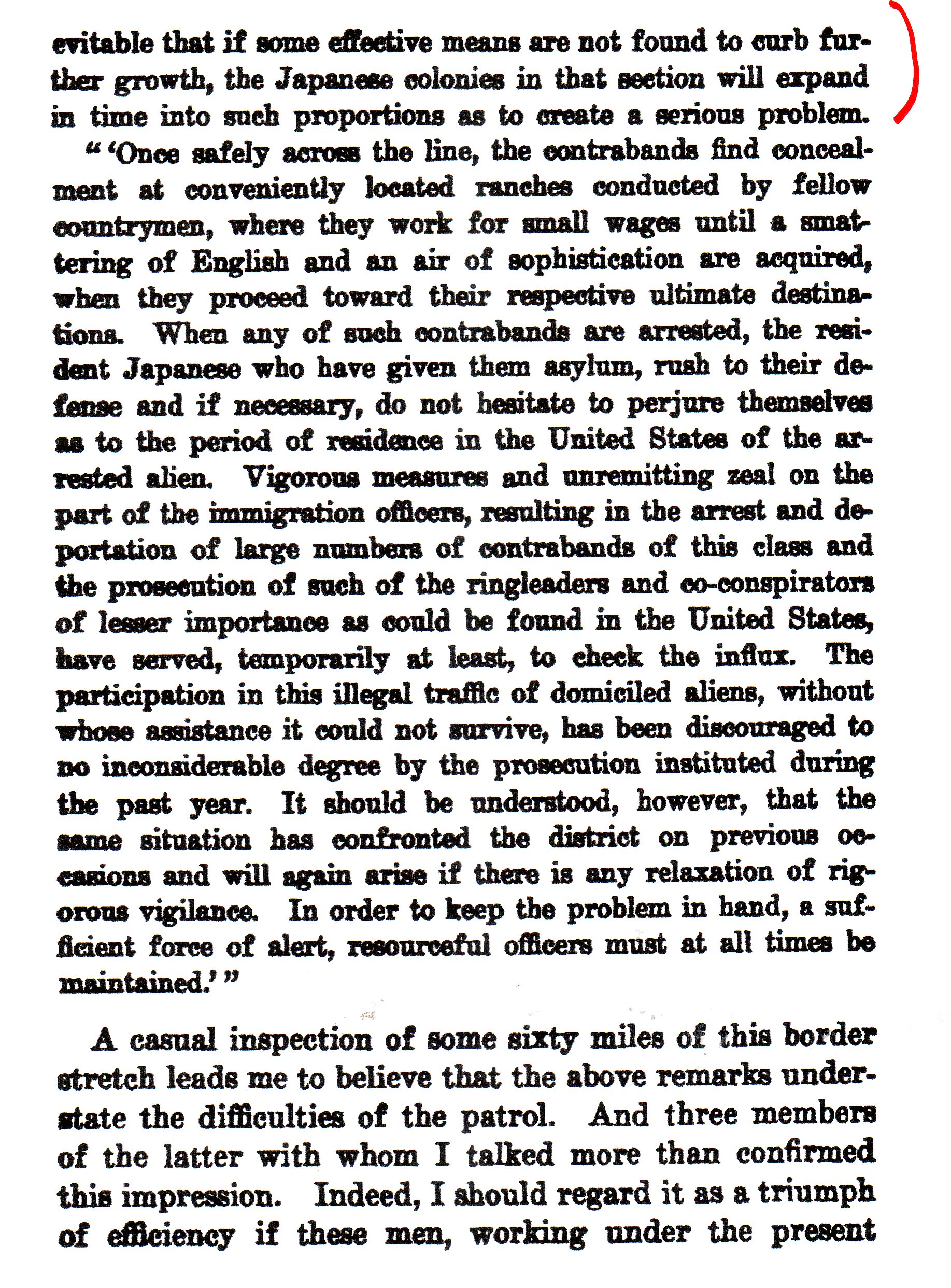 Then there's discussed how illegal immigrants are being brought into the U.S. through Mexico, and how hard it is to prevent that. Almost everything that is said in this section is being repeated today; it's just the particular immigrants are not Japanese but Mexican.