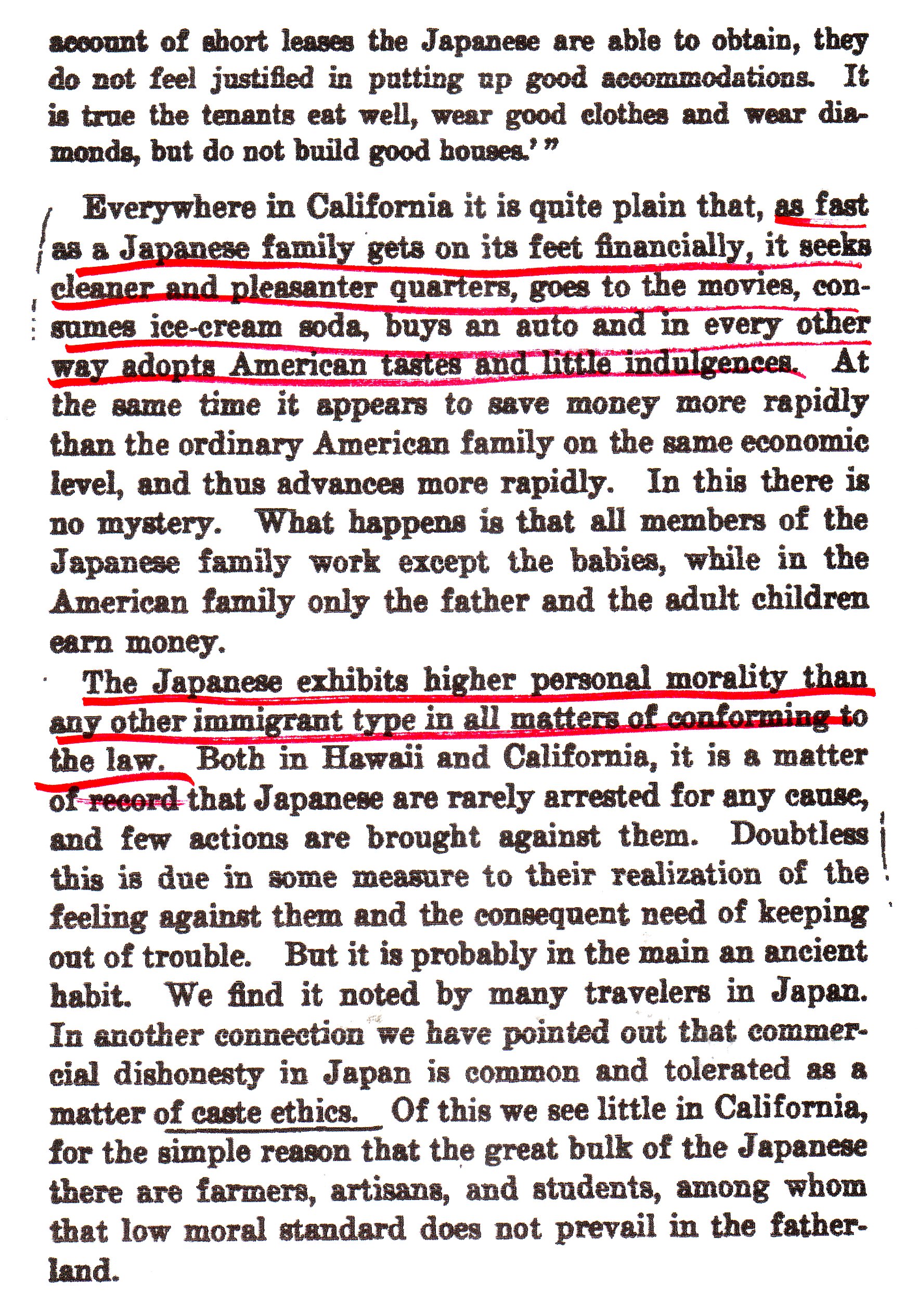 He talks about how the Japanese really do start to assimilate when given the chance, and how they have a high morality.