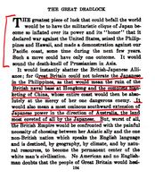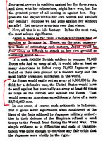 The author talks about Japan seizing the Philippines and Hawaii, the first of which actually happened later and the second of which was still not impossible, at least early in WWII. He notes that Japan would move southward, towards Australia, which again is something that actually happened in the war. Japan came close to actually overrunning Australia and adding them to its empire.