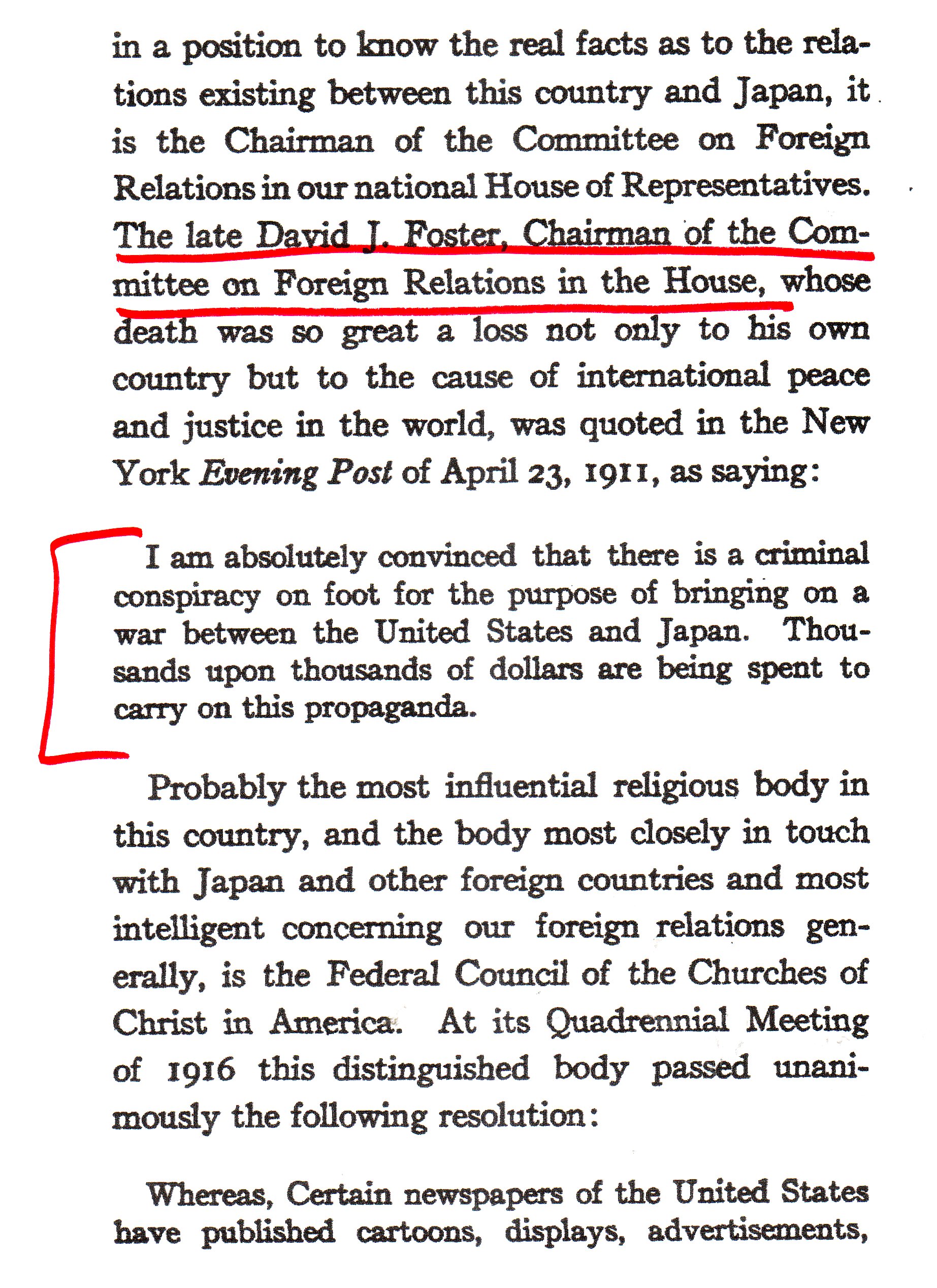 A member of the U.S. Congress holds that there is a “criminal conspiracy” to cause a war between the U.S. and Japan.