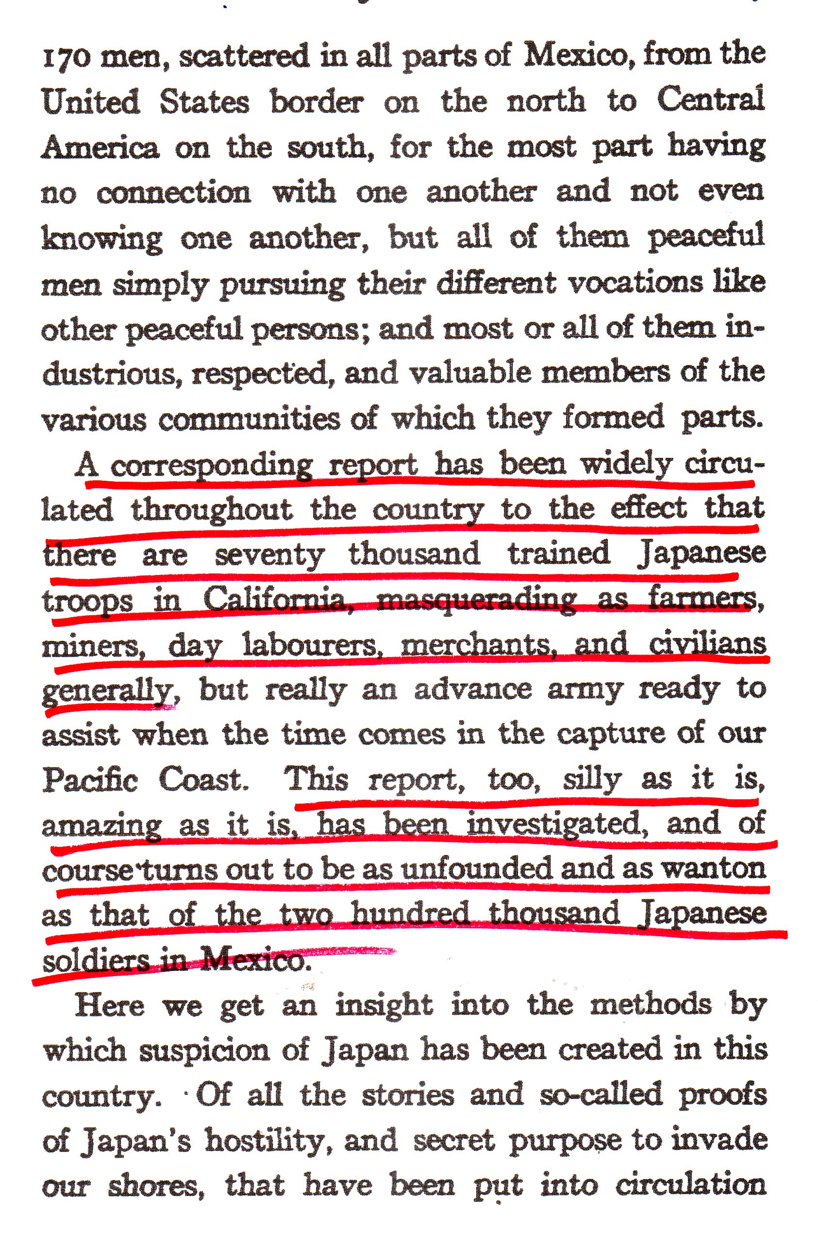 More lies, including one that there were 200,000 Japanese soldiers in Mexico ready to attack the U.S. (If you're going to tell a lie, tell a whopper must have been the reasoning behind this)