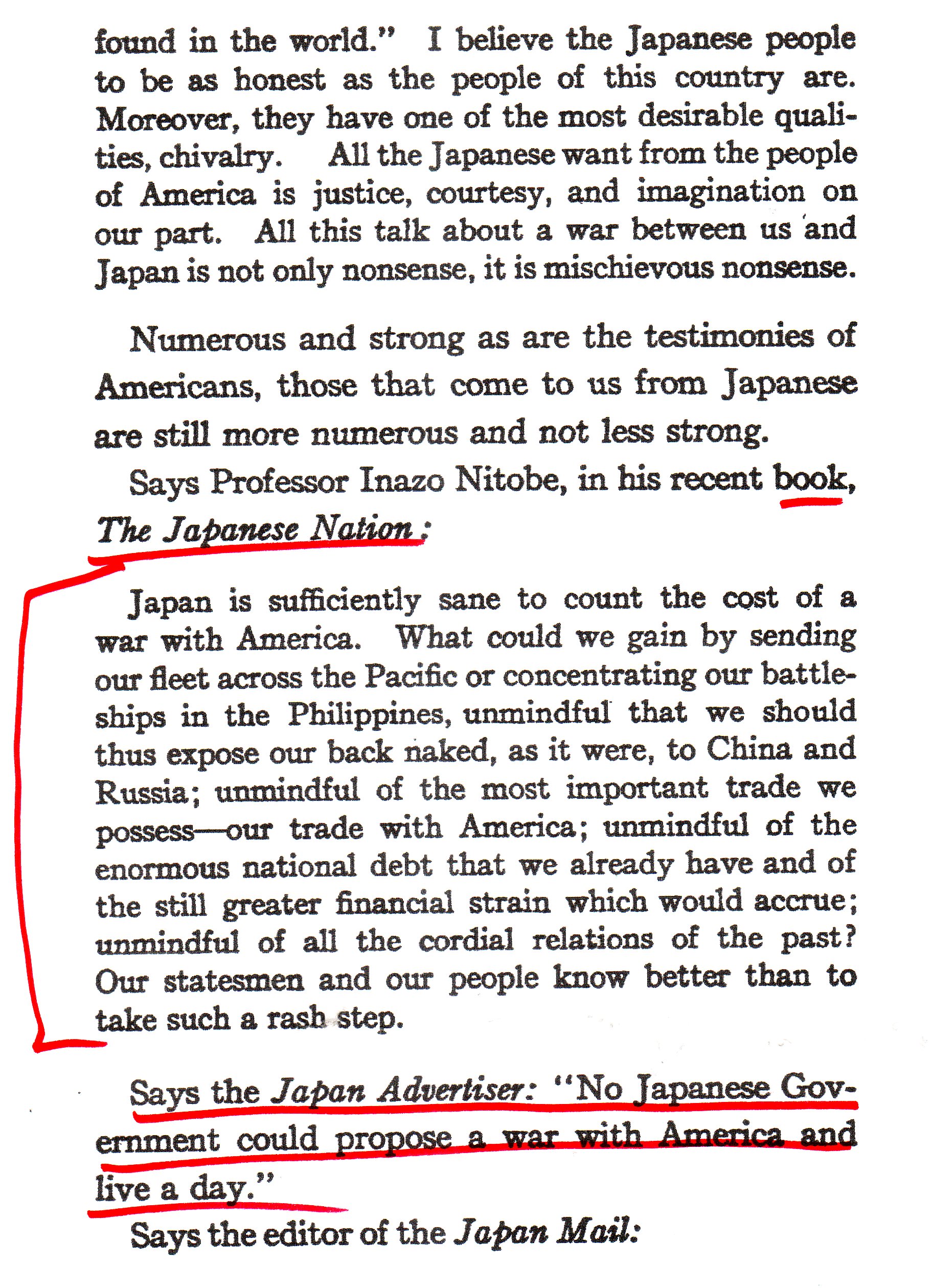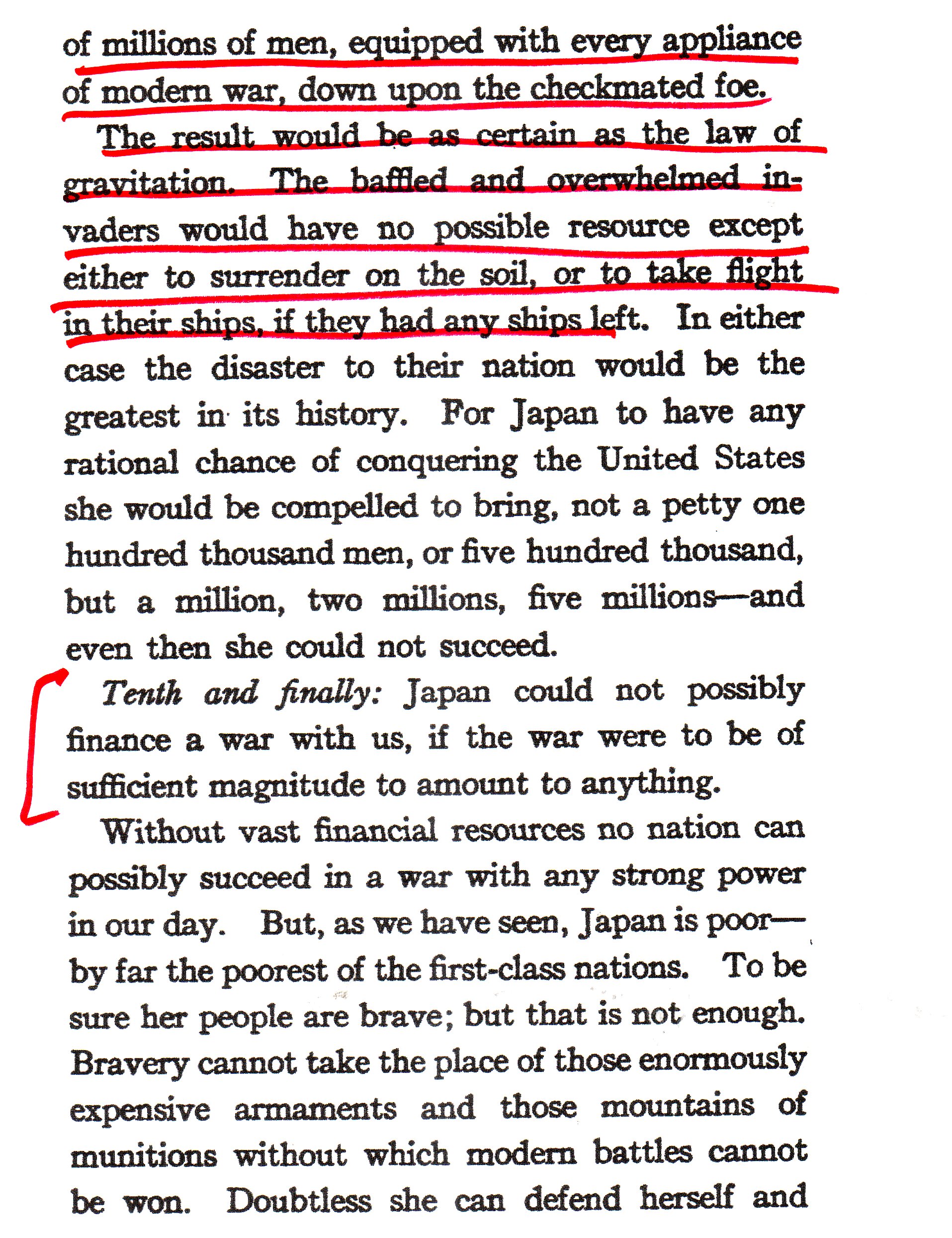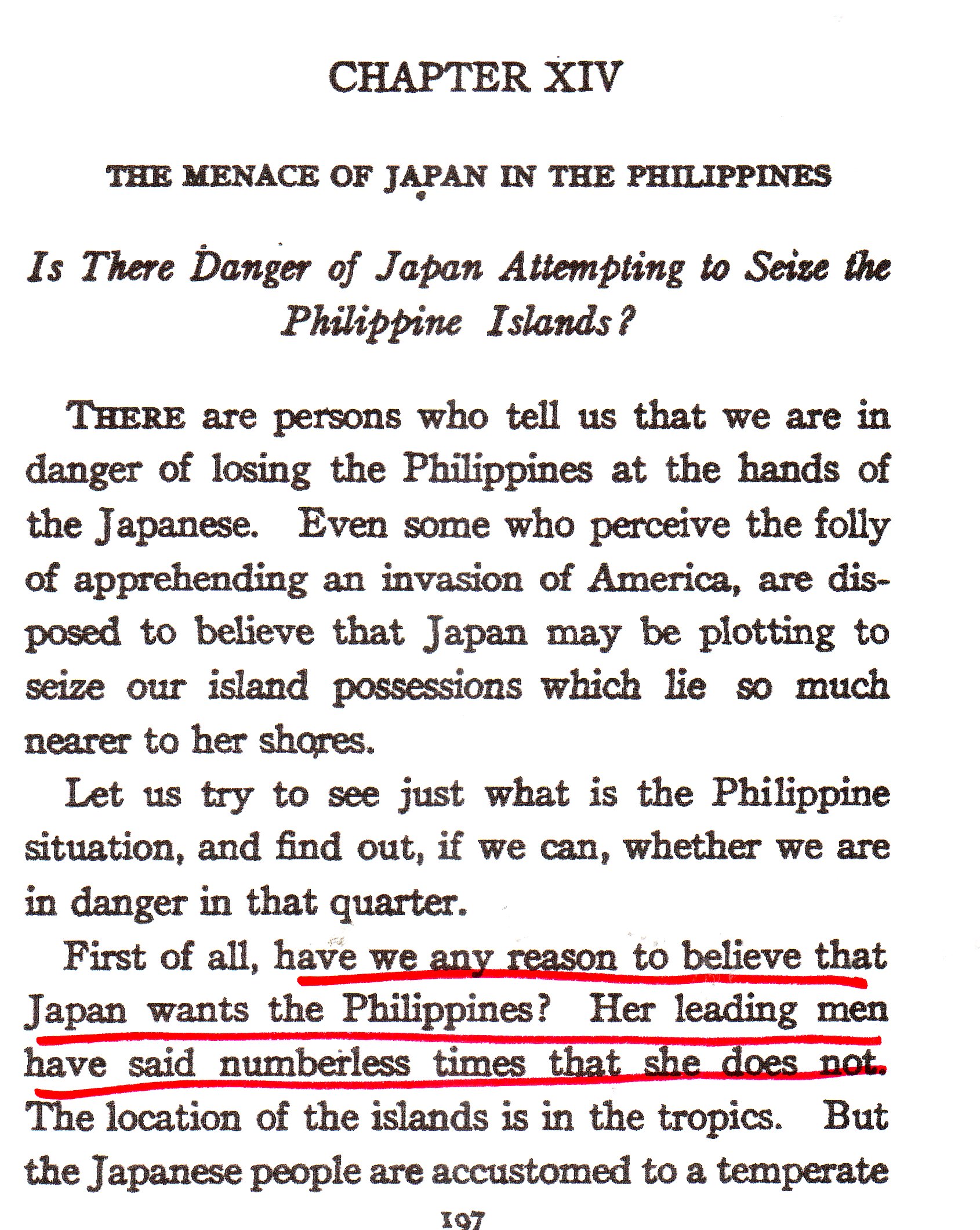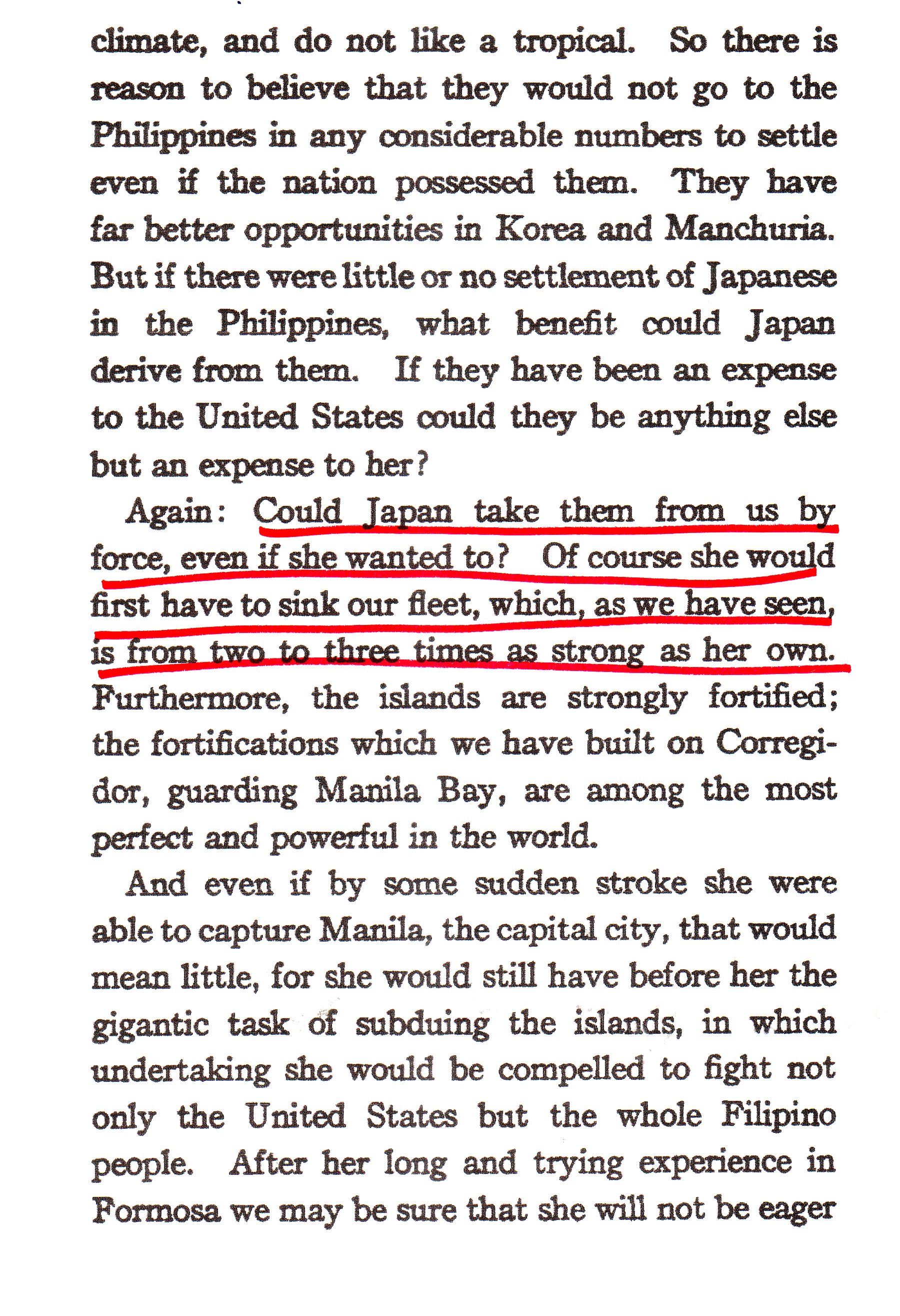 An eerie glimpse into the future, saying that the Japanese could only take the islands if they first “sink our fleet,” which is pretty close to what happened.