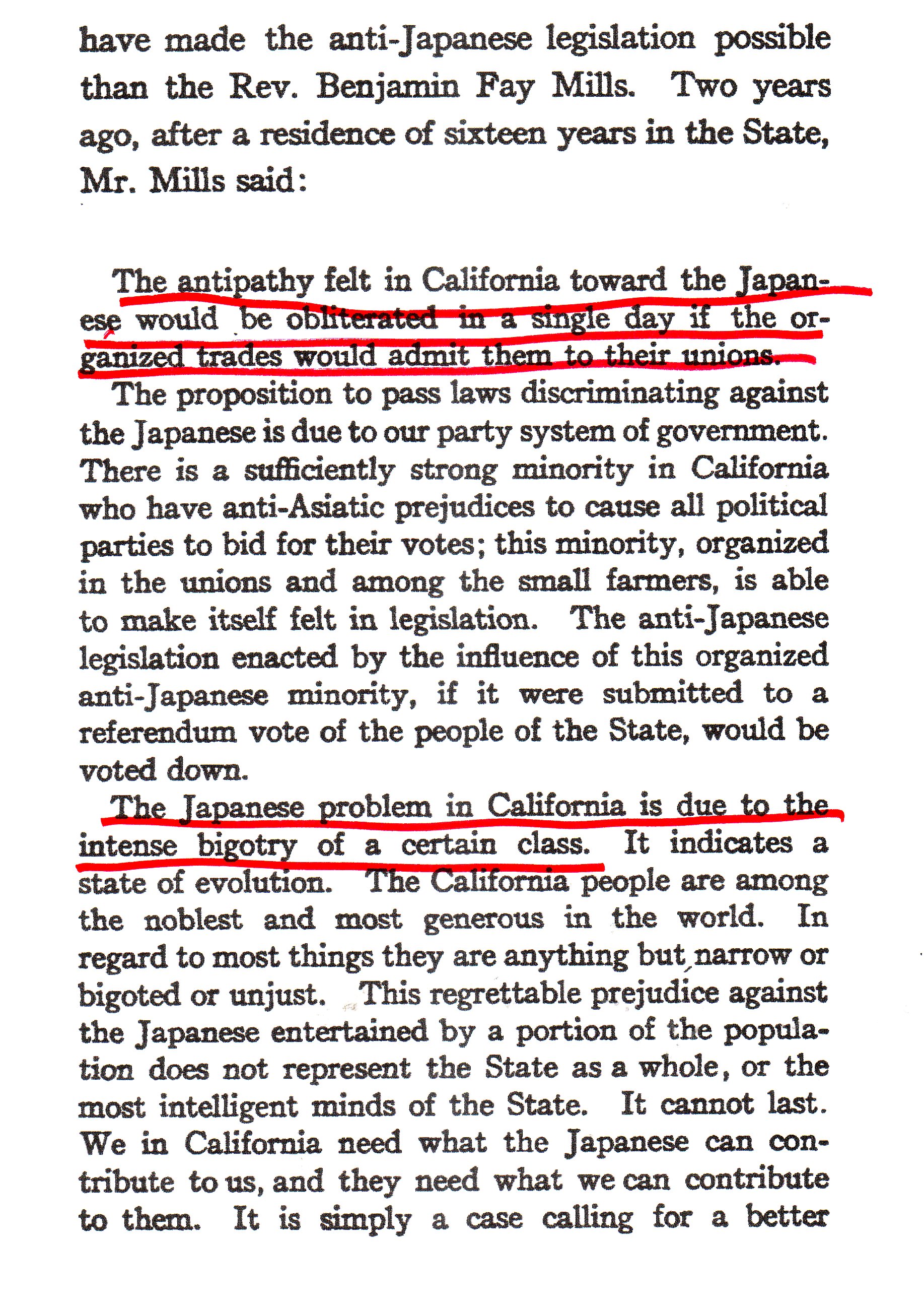 The author lays a lot of the blame directly at the feet of the trade unions. It was the unions that really opposed the Japanese tremendously. “The immigrants are taking our jobs.” Sound familiar?